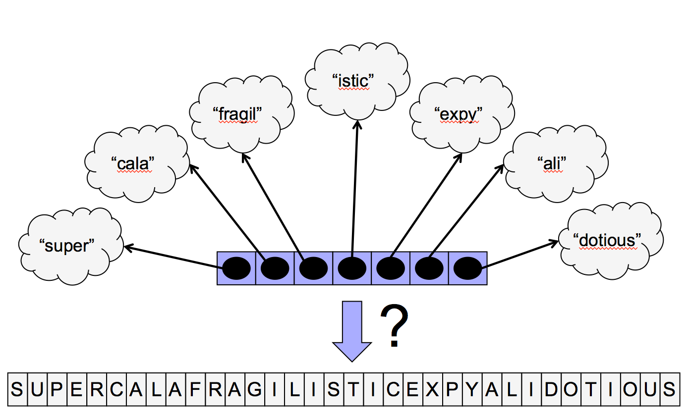 s u p e r c a l a f r a g i l i s t i c e x p y a l i d o t i o u sIn C# the equivalent solution is almost as nice: