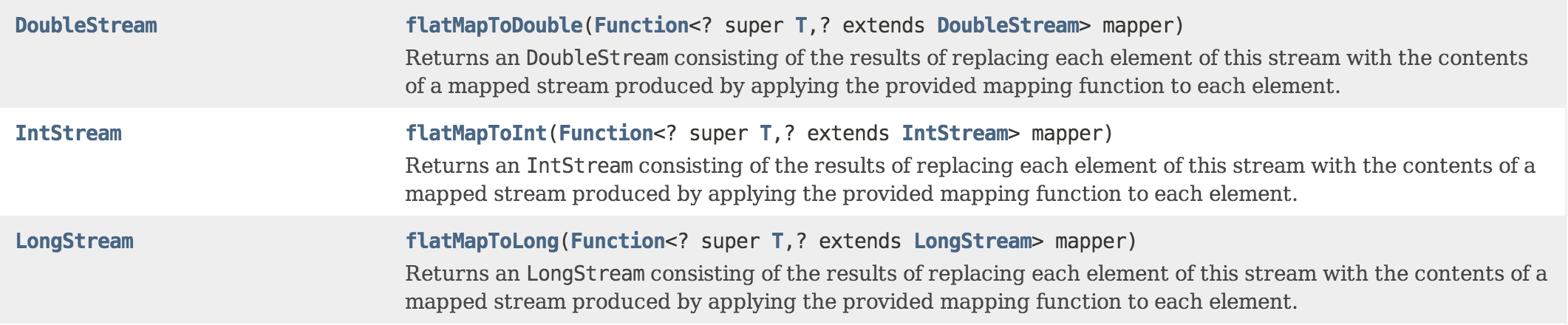 data.flatMap(s -> null)But an experienced Java developer will not because they have internalised that rule that arrays, whilst being the built in type, are not a built in type. If you parsed that preceding sentence without a cognitive flicker then congratulations on your knowledge of Java, but please go back and reread it as a beginner.